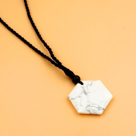 ব্লেক থ্ৰেডত আমাৰ আচৰিত Hexagon Howlite Pendant ৰ সৈতে এটা বিবৃতি দিয়ক। লকেটটোৰ অনন্য ষড়ভুজ...