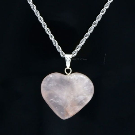 This heart-shaped rose quartz pendant with a stainless steel rope chain is a perfect accessory...