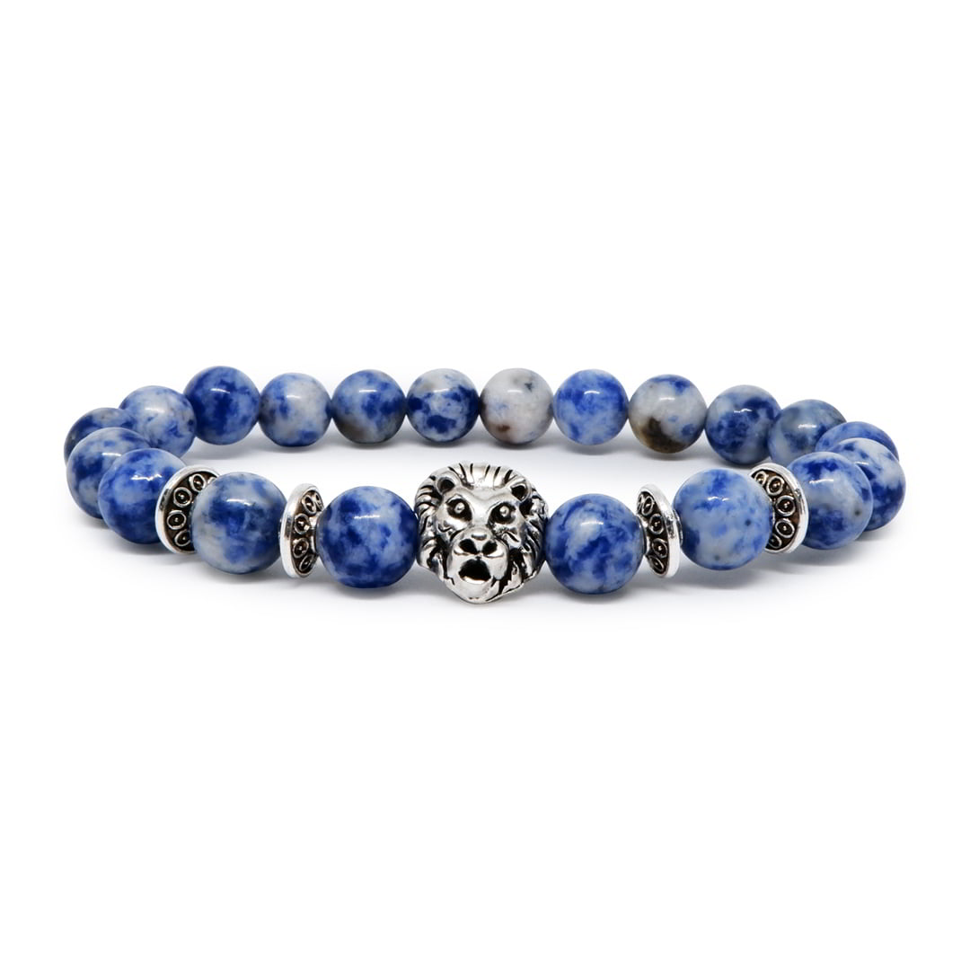 - A Bold Sodalite 8mm beads Bracelet with Lion Head for Unisex.