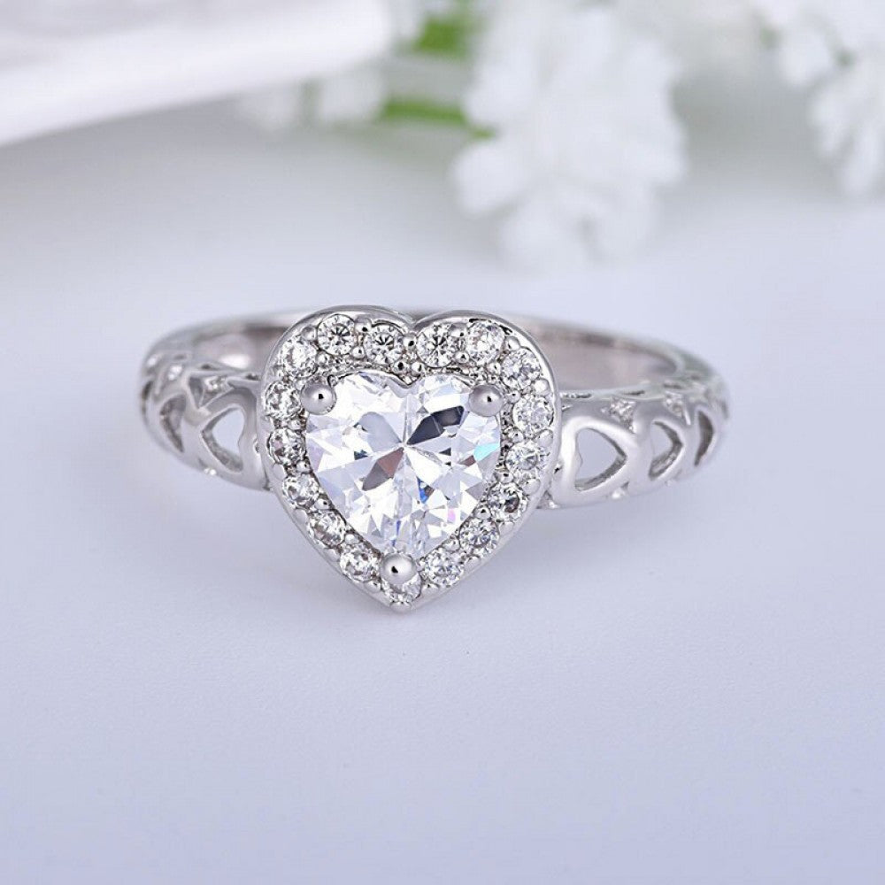 - Austrian Crystal Heart Shape Platinum Plated CZ Ring for Girls/Women
