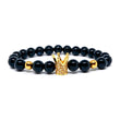 - A Royal Black Agate Bracelet with 22k Gold Plated CZ Crown for Unisex.