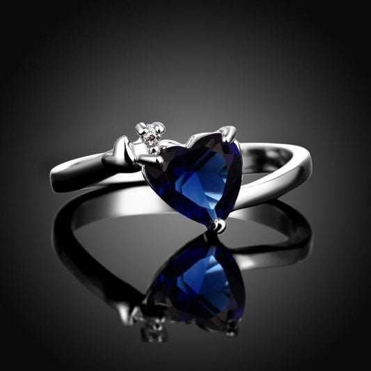 Blue Crystal Cute lovey-dovey Platinum Plated Ring for Women/Girls Made with Internationally approved skin-friendly materials...