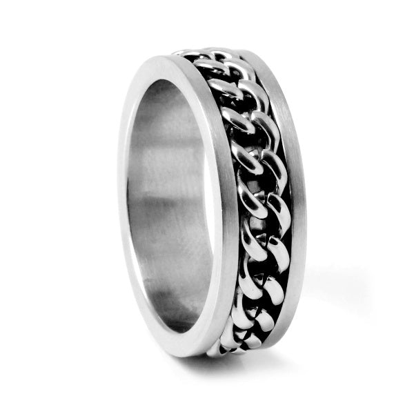 - Silver Tone Stainless Steel Rotating Chain Ring for Men/Boys.