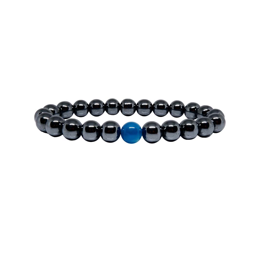 - A Magnetic Therapy Bracelet For Weight Loss with Hematite & Blue Agate for Unisex.