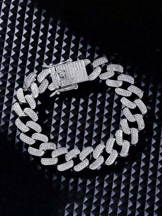 luxury mens hip hop silver Link white Diamond Bracelet Made with Internationally approved skin-friendly materials...