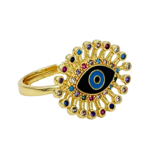 Protect you From any ill glare and harm Evil Eye Ring No Tarnish with Multi CZ...