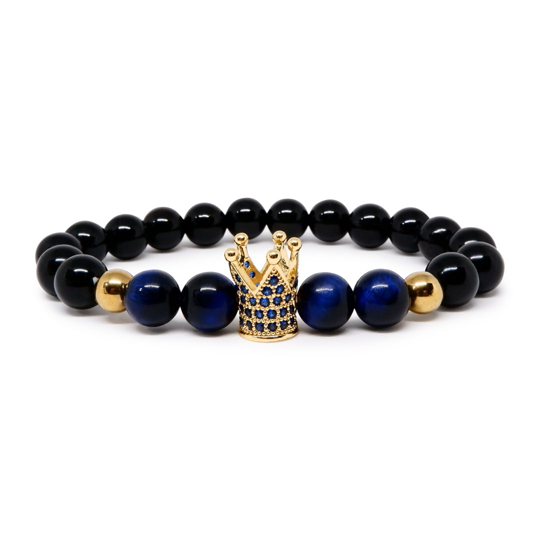• A Royal Blue Tiger Eye Bracelet with CZ Crown for Unisex.