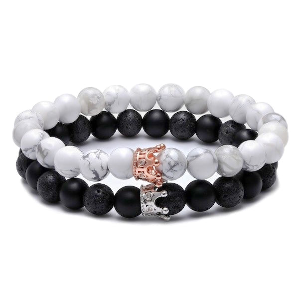 Lava Howlite Couple Bracelet with CZ Crown