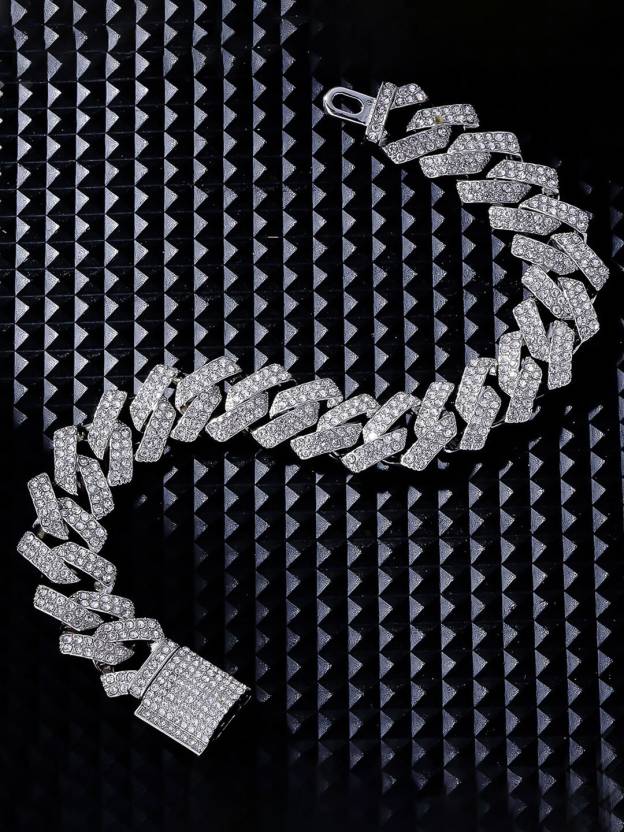 - luxury mens hip hop silver Link white Diamond Bracelet