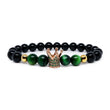 • A Royal Green Tiger Eye Bracelet with 22k Gold Plated CZ Charm for Unisex.