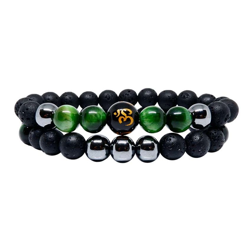 Strength Bracelet Lava Stone Paired with Onyx Om Engraved