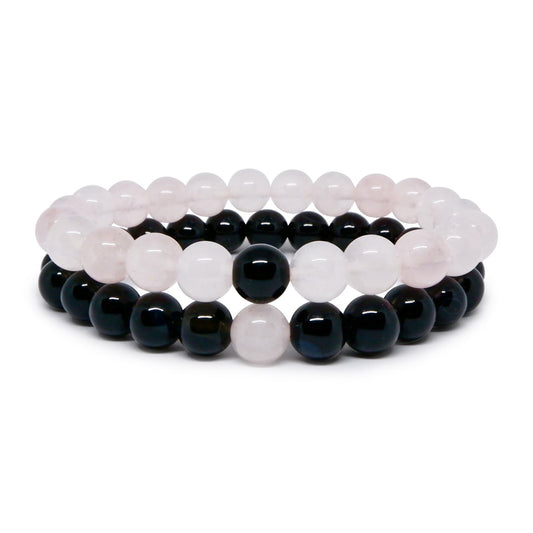 COUPLE BRACELET ROSE QUARTZ + BLACK AGATE ALWAYS & FOREVER Source from Washington & USA, Handcrafted with ❤️ in India...