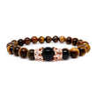Tiger Eye Bracelet with Black Obsidian & CZ Crown